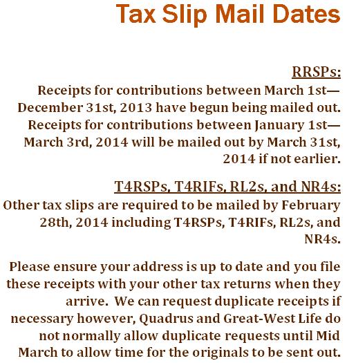 We are now into the height of RRSP and TFSA season! The RRSP deduction deadline for the 2013 tax year is March 3rd; as of January 1st, 2014 Canadian citizens now have an additional $5,500 of contribution room available for their Tax-Free Savings Accounts. With these investing opportunities and the potential of the market for 2014, now may be the time to give us a call!